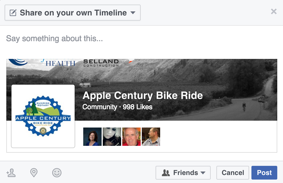 Here, you can write a little something about the bike ride and then click "Post" at the bottom of the box and this will share the page on your timeline!